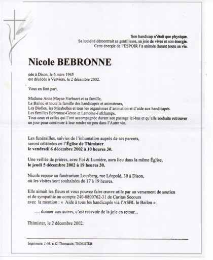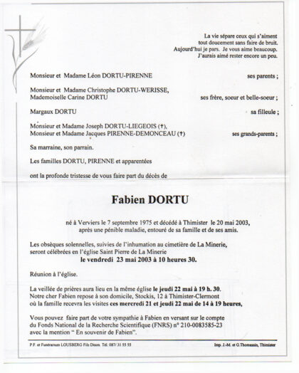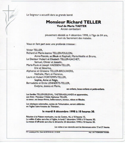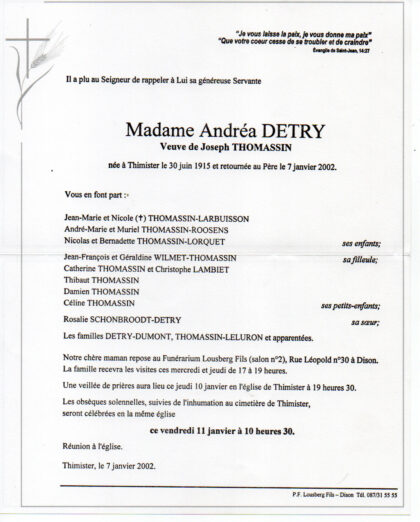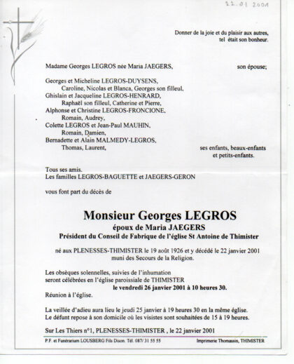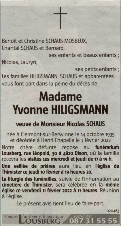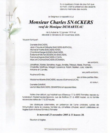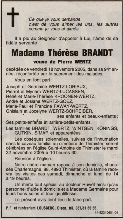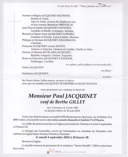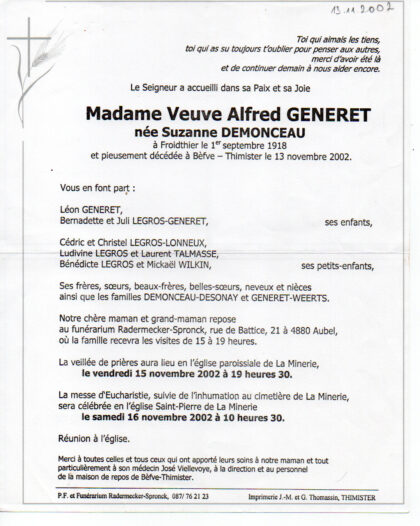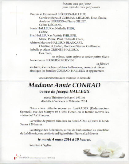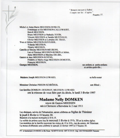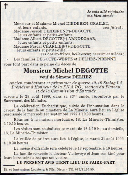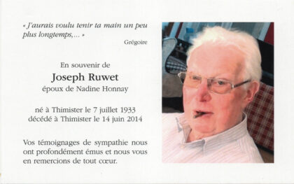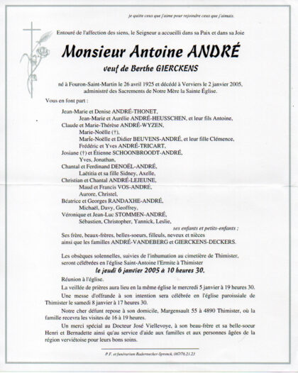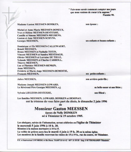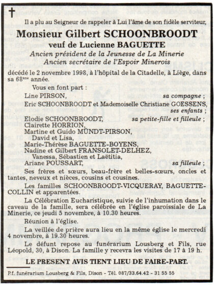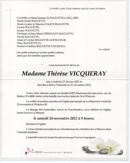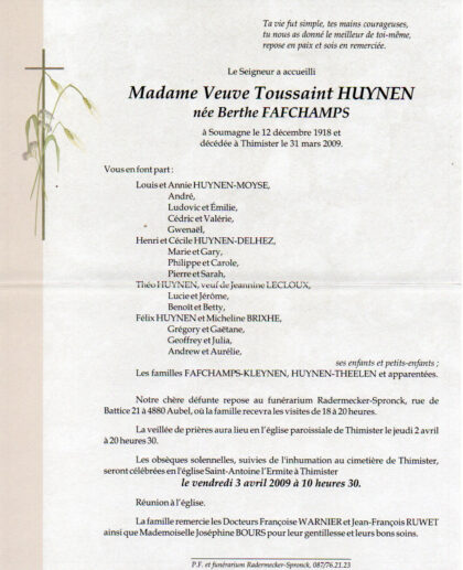Clermont 2012 Avis de décès de M. François HUBIN époux de Rose STASSEN