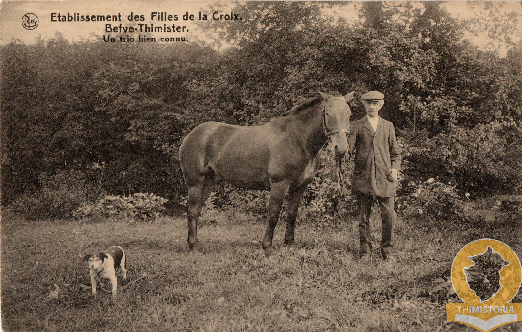 Bèfve ±1920 Établissement des Filles de la Croix Un trio bien connu 22 février 202621 février 2026 André VERREUX Le cocher du couvent de Bèfve avec son cheval et son chien