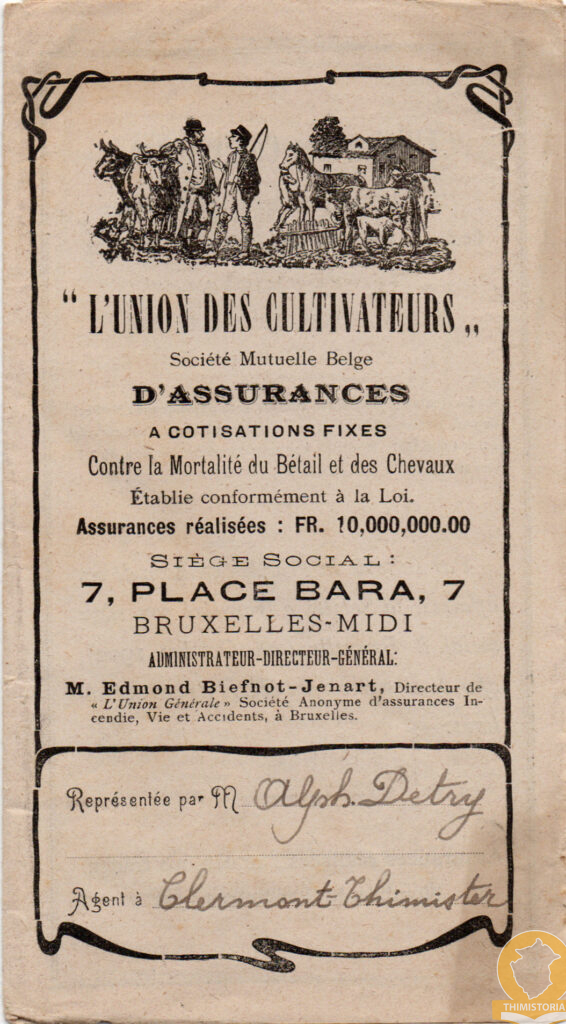 Ici Alphonse DETRY représente auprès des agriculteurs la société d’assurance « L’Unions des Cultivateurs ».