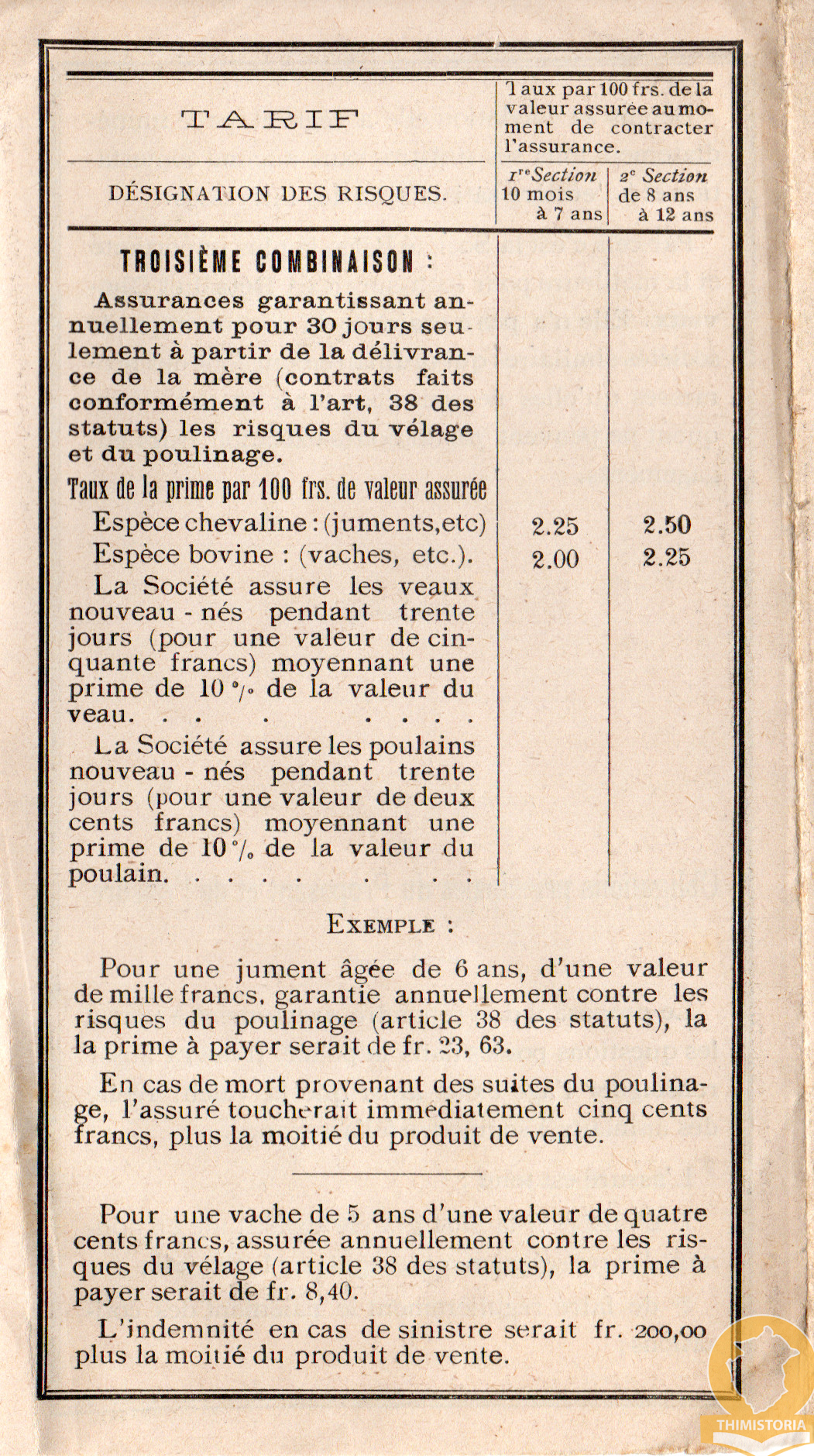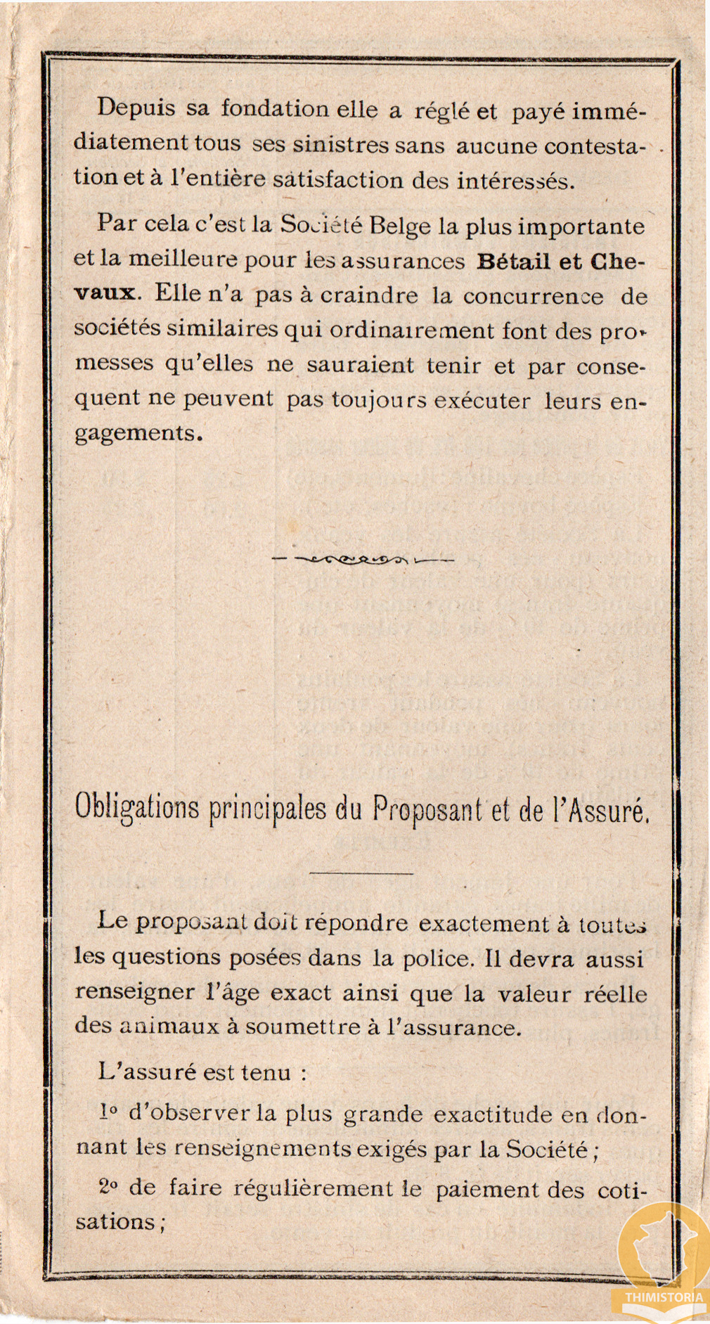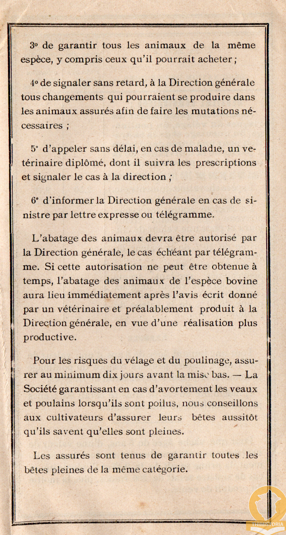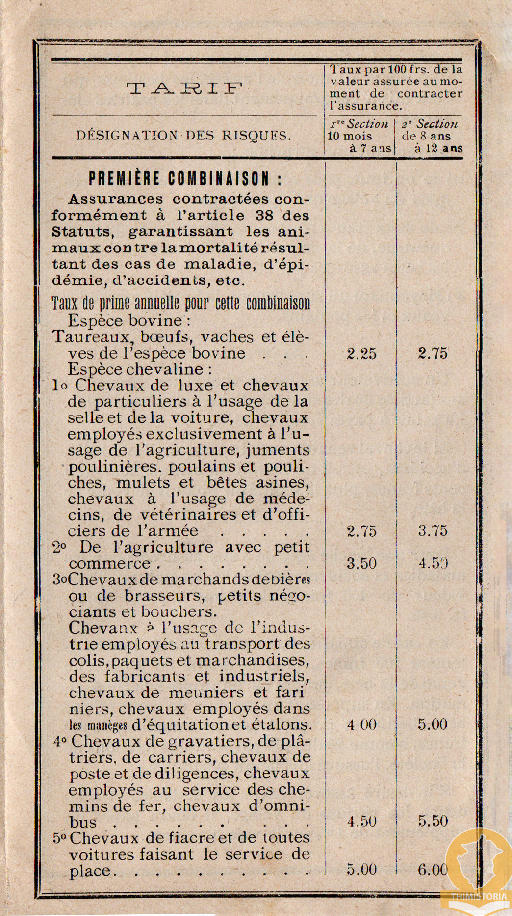 Prospectus de la compagnie d’assurance « L’Unions des Cultivateurs » contre la mortalité du bétail et des chevaux.