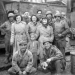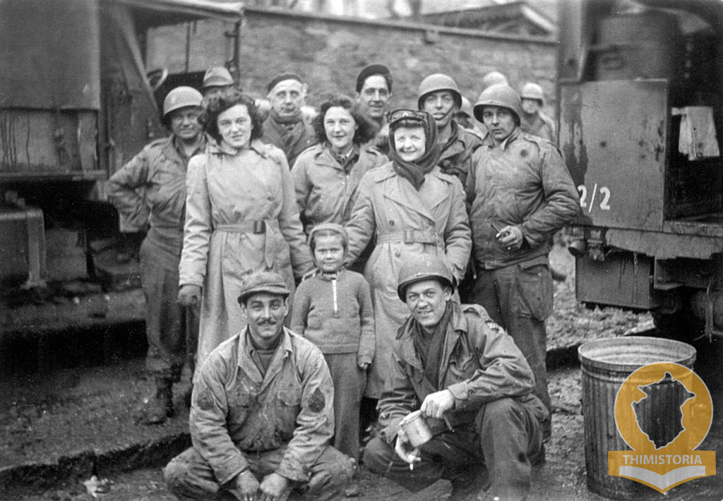 Clermont-1945-GI chez PIRENNE 5 septembre 202023 janvier 2021 André VERREUX Mars 1945, Brigide PIRENNE( la petite fille) entourée d’infirmières de la 99ème division d’infanterie, en repos, après la bataille des Ardennes. A l’arrière, portant un béret, Achille FRANCK.