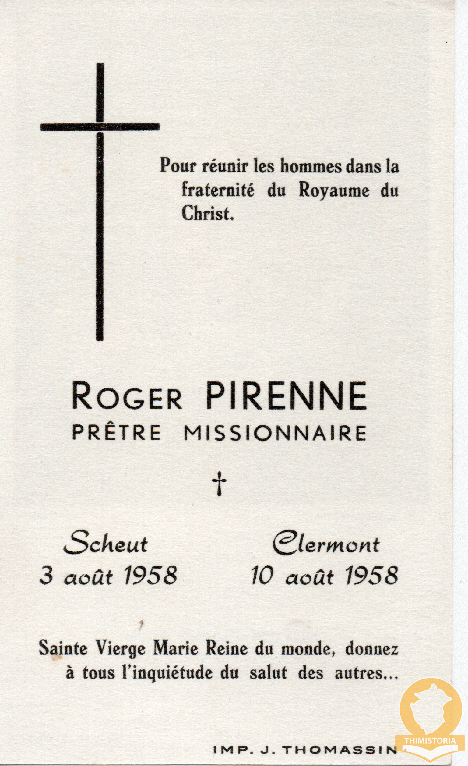 Clermont 1958 Souvenir des prémices sacerdotales de Roger PIRENNE 8 février 20256 février 2025 André VERREUX