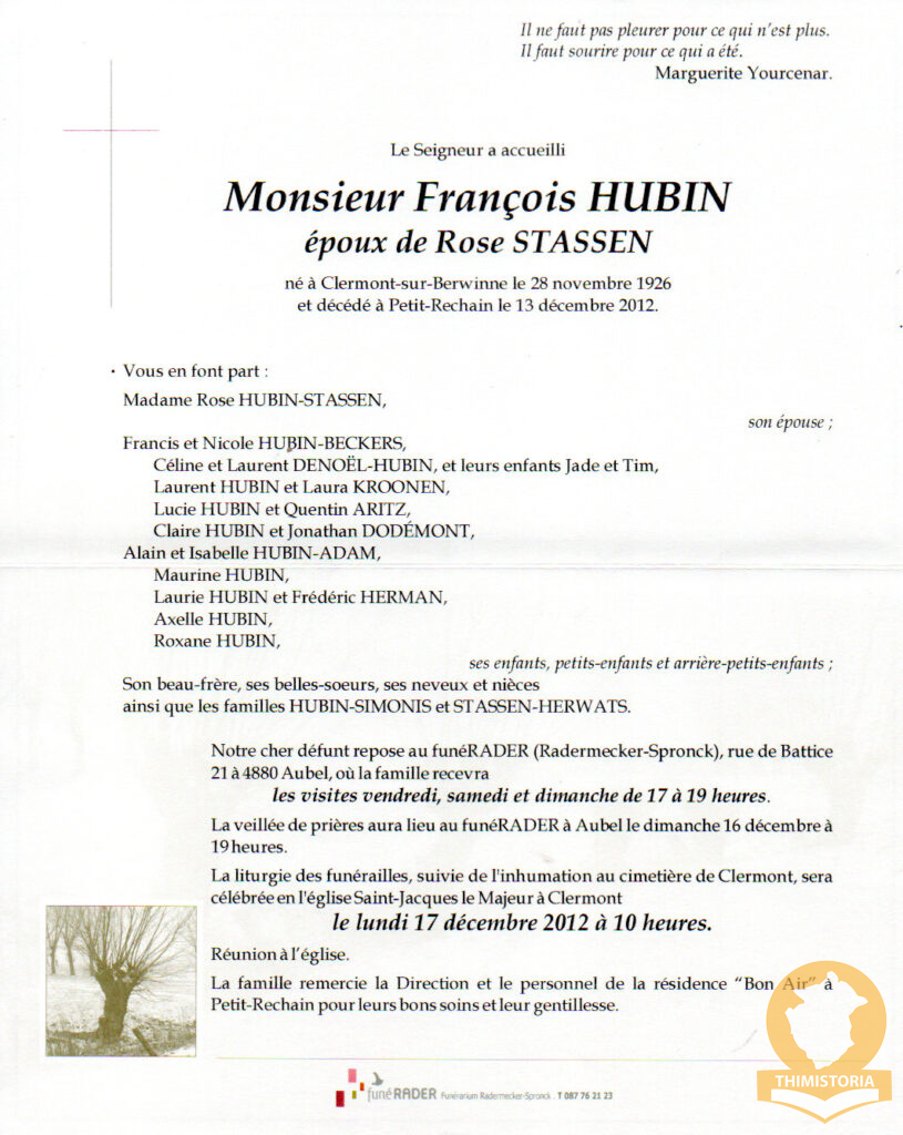 François HUBIN tenait avec son épouse un magasin de quincaillerie et d’électro-ménager à Clermont (place de la Halle).