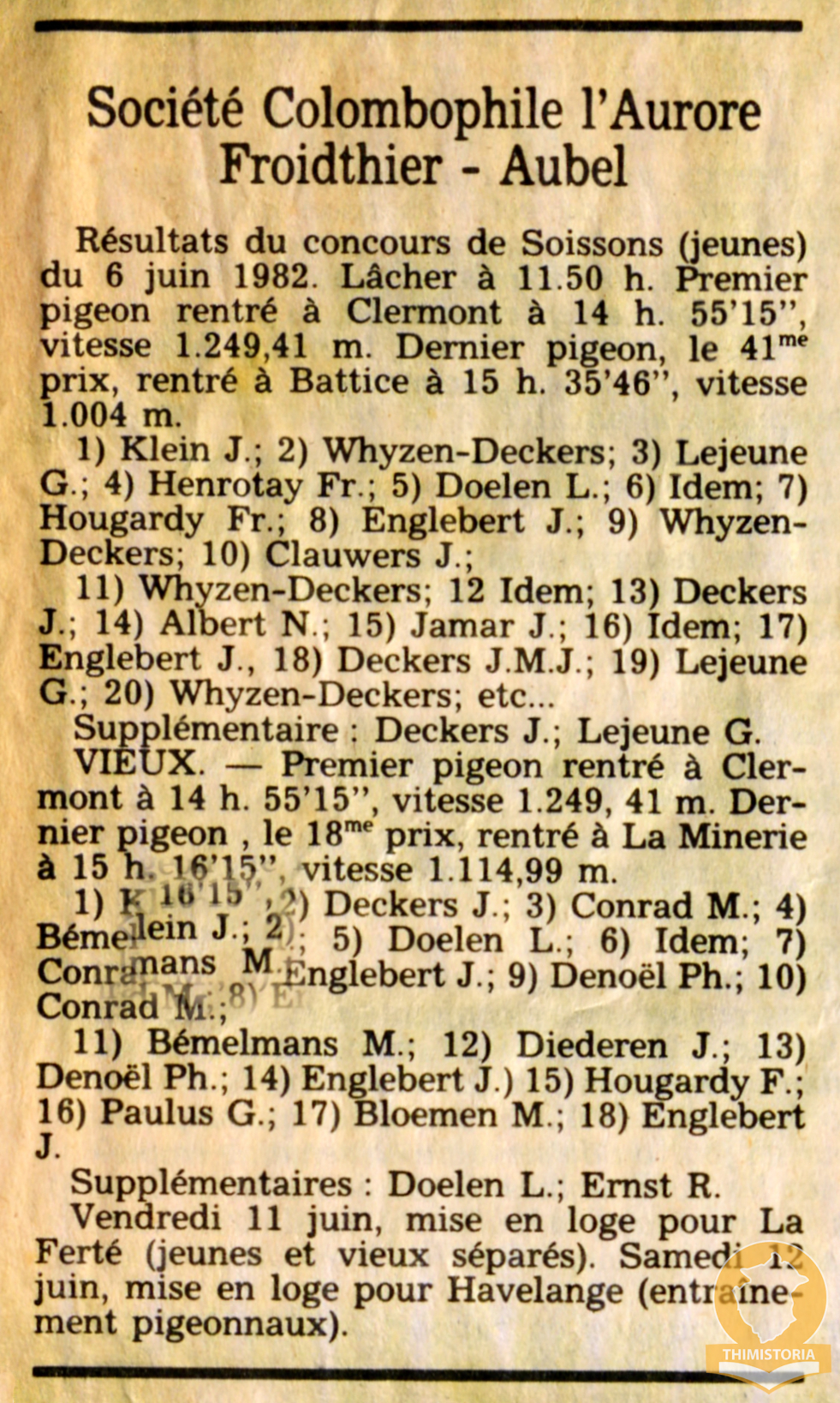 Froidthier 1982 Résultat du concours colombophile de la société L’Aurore 20 décembre 202513 décembre 2025 André VERREUX