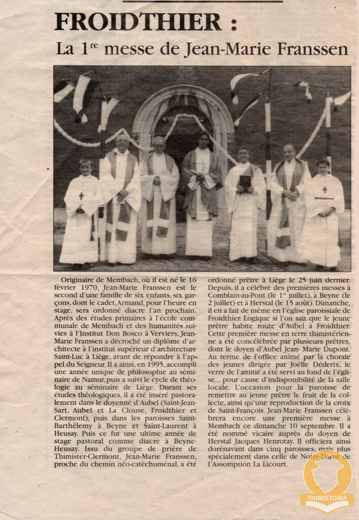 Froidthier 1998- Prémices sacerdotales de Jean-Marie FRANSSEN 26 décembre 202427 décembre 2024 André VERREUX