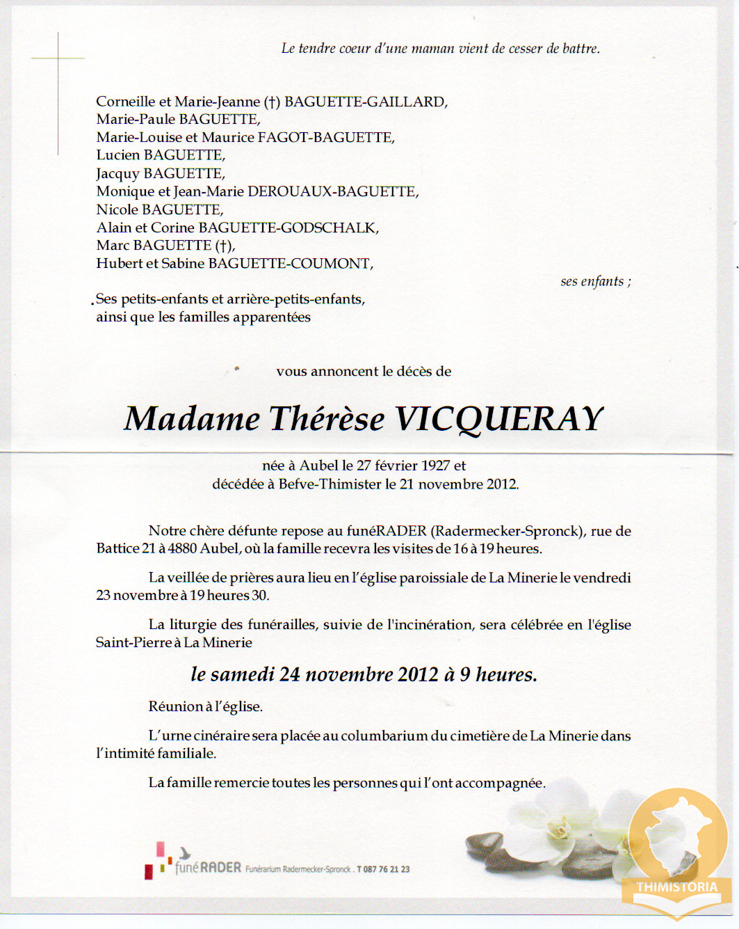 La Minerie 2012 Avis de décès de Mme Thérèse VICQUERAY 20 décembre 202518 décembre 2025 André VERREUX