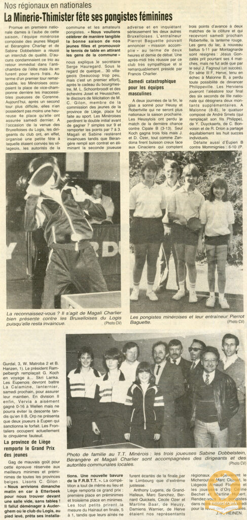 La Minerie-Thimister-1986- Article de journal Le Courrier «La Minerie Thimister fête ses pongistes féminines» 31 décembre 202430 décembre 2024 André VERREUX
